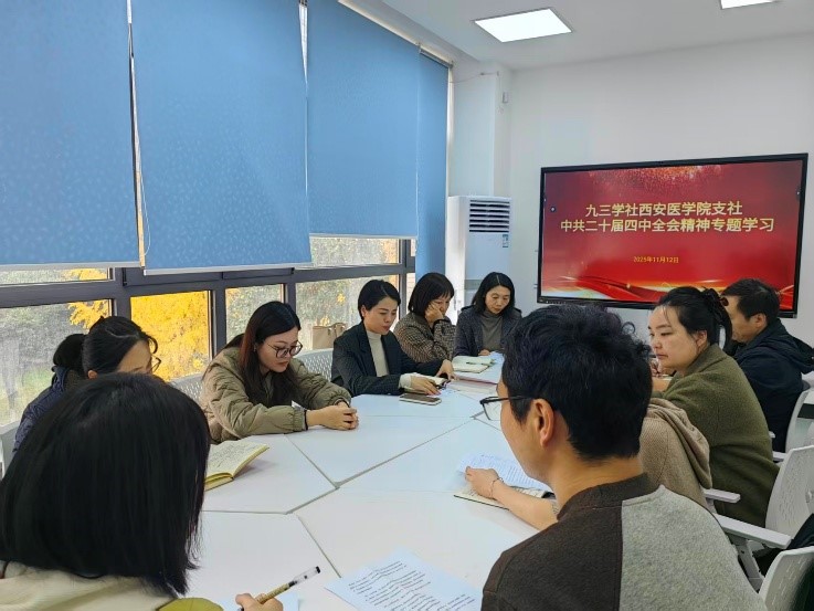 11月12日中午,九三学社西安医学院支社在未央校区召开专题学习会议,深入学习贯彻中共二十届四中全会精神,凝聚奋进力量,共谋发展新篇。会议由支社主委杨蕙宇主持。