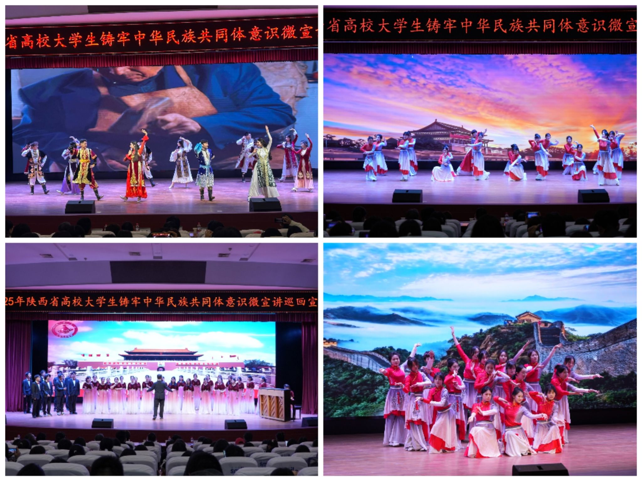 11月19日,2025年陕西省高校大学生铸牢中华民族共同体意识微宣讲巡回宣讲活动在我校举办。陕西省民族宗教事务委员会民族一处处长张岩松、我校党委副书记李雪萍出席活动并致辞。省民宗委民族一处副处长阙浩,西安工业大学党委委员、党委统战部部长雷晓青受邀参加活动。